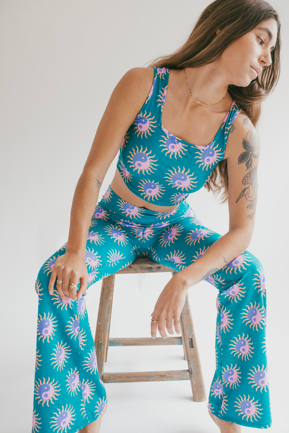 • Elegant and contemporary square style neckline. Pair with Tropical Yin Yang shorts, leggings and/or flare pants for full outfit.